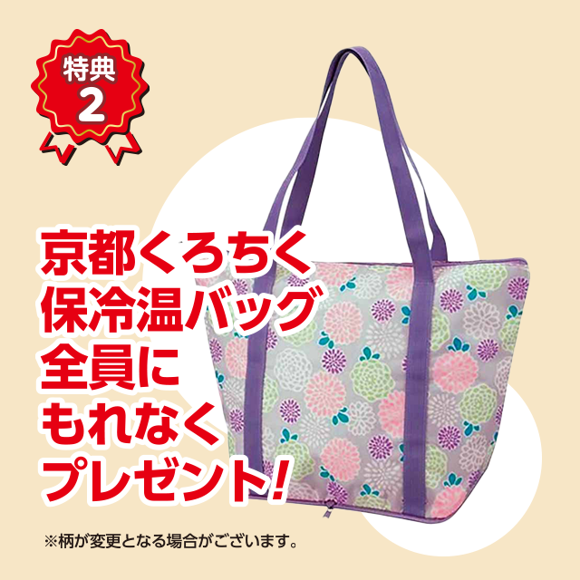- ●あったらうれしい♪京都くろちく保冷温バッグがもらえる!※2