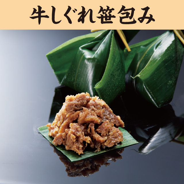 合鴨燻製、金柑甘露煮、くるみ甘露煮、牛しぐれ笹包み、伊達巻、祝海老、白花豆、たたき牛蒡、田作り、若桃甘露煮、昆布巻